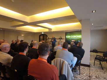 Na een leuke intermezzo met Tom Coronel en een lunch volgde een bezoek aan ons productiebedrijf Ertecee. Hier kregen de deelnemers onze praktische oplossingen te zien voor het voldoen aan de huidige en toekomstige eisen van een brandveilig en duurzaam plat dak. Aan bod kwamen onze ‘dual density’ isolatie PowerTop, de onlangs geïntroduceerde brandwerende isolatie XireTop en ons toekomstige GreenLine assortiment. Een GreenLine-product bestaat voor minimaal 30% uit gerecyclede EPS-content en zorgt voor een aanzienlijke CO2-reductie.