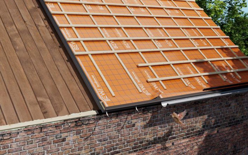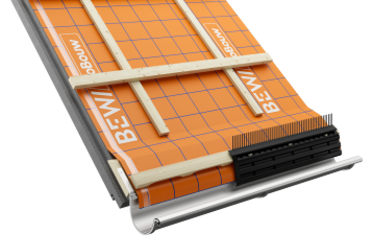 De tijdwinst van SlimFix RenoMulti zit niet alleen in het lage gewicht en de handzame verwerking van de dakelementen. De grootste versnelling ontstaat bij de waterafdichting. De elementen zijn voorzien van een waterkerende en dampopen (WKDO) folie met een overlap aan de lange zijde. Dankzij de tweezijdige plakstrips kan deze overlap direct en betrouwbaar worden afgedicht. Dit verkleint de kans op vertraging door weersomstandigheden en maakt het dak snel waterdicht.