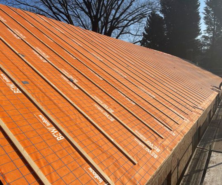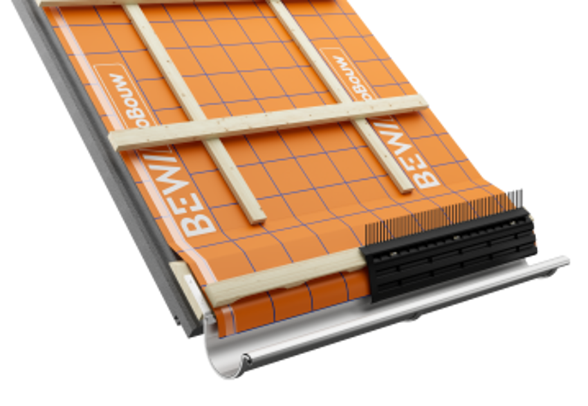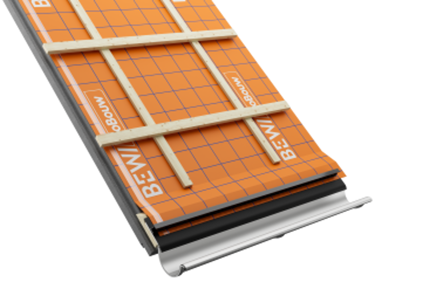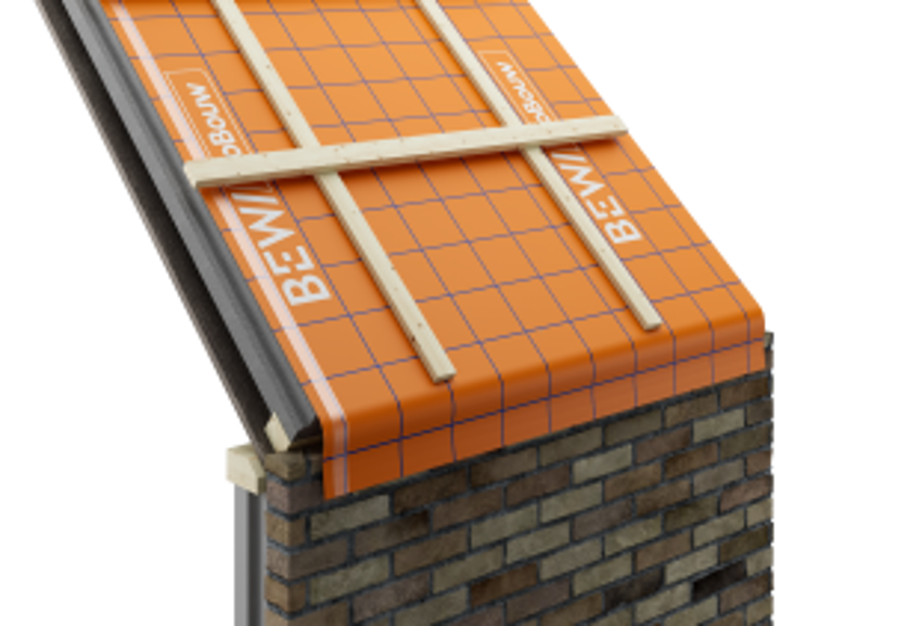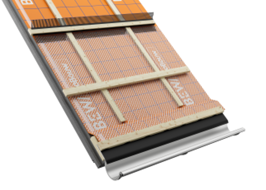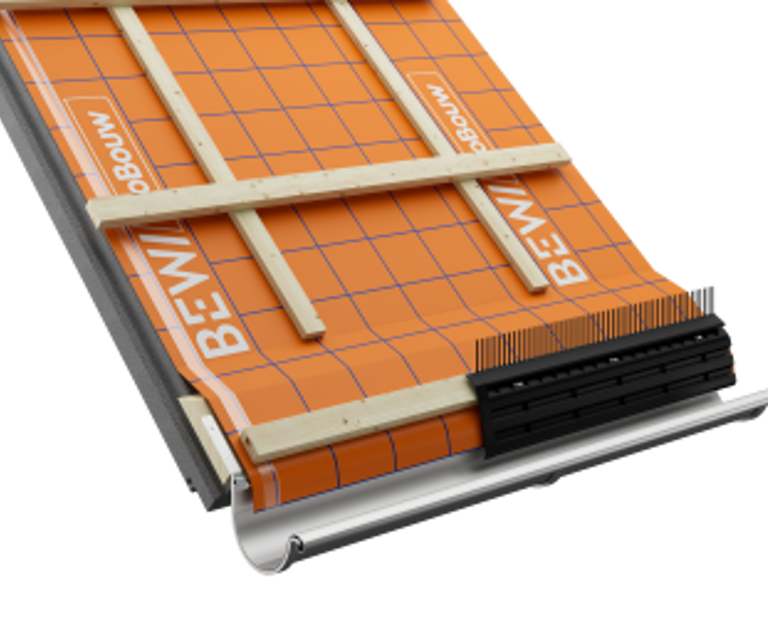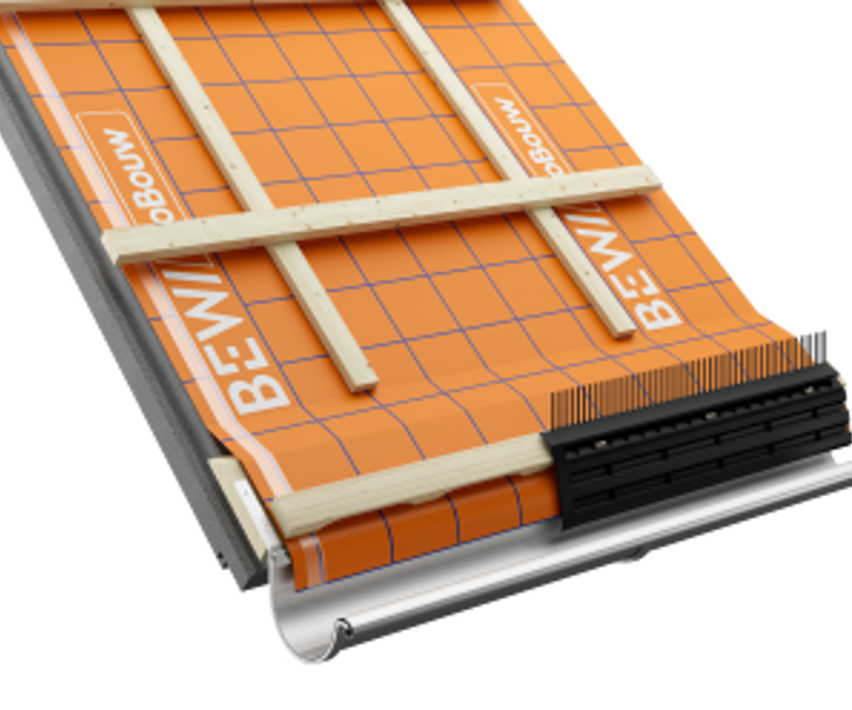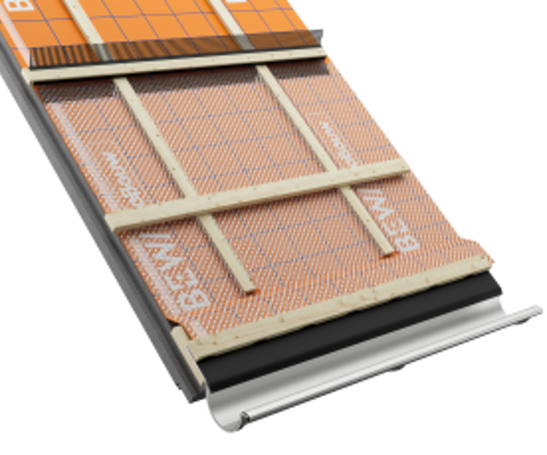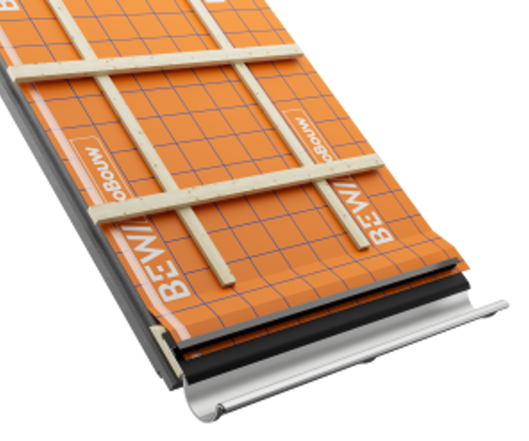 De tijdwinst van SlimFix RenoMulti zit niet alleen in de veilige beloopbaarheid, het lage gewicht en de handzame verwerking van de dakelementen. De grootste versnelling ontstaat bij de waterafdichting. De elementen zijn voorzien van een waterkerende en dampopen (WKDO) folie met een overlap aan de lange zijde. Dankzij de tweezijdige plakstrips kan deze overlap direct en betrouwbaar worden afgedicht. Dit verkleint de kans op vertraging door weersomstandigheden en maakt het dak snel waterdicht.