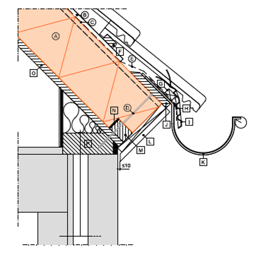- Geïntegreerde noodwaterdichting van de nok en de gevel