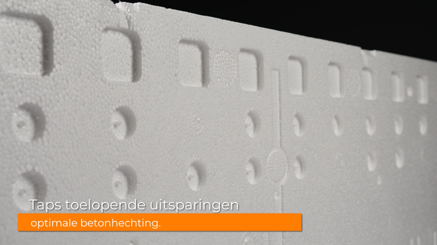 7. Optimale betonhechting door taps toelopende uitsparingen.