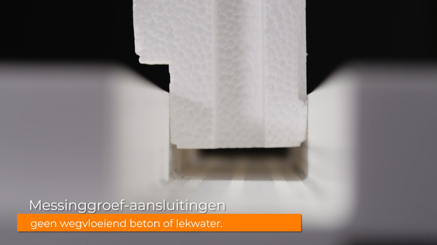 6. Geen wegvloeien van beton of lekwater door messing/groef-aansluiting bij bodemplaat en zijwand.