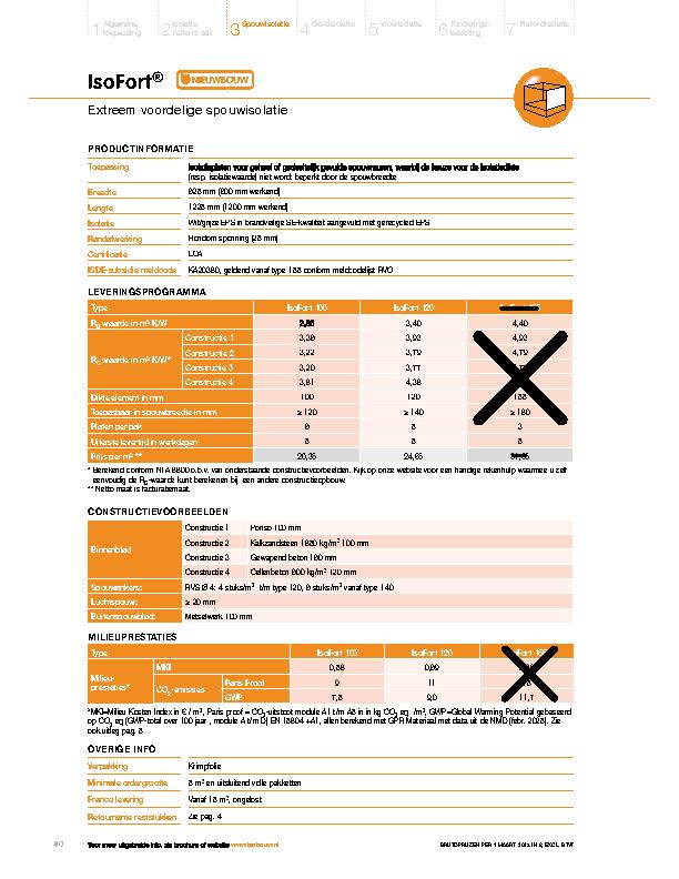 De IsoFort spouwmuurisolatie bestaat voor een groot gedeelte uit gerecyclede EPS zonder dat dit tot kwaliteitsverlies leidt. De grijs/wit gespikkelde spouwisolatie heeft een uitstekende isolatiewaarde en is veilig, snel en eenvoudig verwerkbaar. IsoFort is de meest economische oplossing bij gevelconstructies waar toepassing van de gekozen isolatiedikte (resp. isolatiewaarde) niet wordt beperkt door de spouwbreedte.